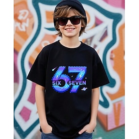 Katoen Kinderen Jongens Zwart Grafisch Grappige Slang 67 T-shirt Blouse Strakke ronde hals Korte mouw Buiten Dagelijks gebruik Modieus Streetwear Ontwerper Opdrukken Zomer