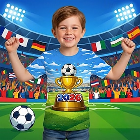 Jongens 3D Voetbal T-shirt Korte mouw Zomer Lente Modieus Basic Kinderen 4-12 jaar Strakke ronde hals Buiten Casual Dagelijks Normale pasvorm