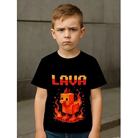 Jongens 3D Grafisch T-shirt Korte mouw Zomer Lente Modieus Basic Kinderen 4-12 jaar Strakke ronde hals Buiten Casual Dagelijks Normale pasvorm