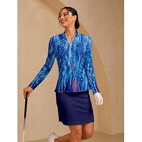 Dames golf jurk Blauw Lange mouw Dames golfkleding kleding outfits draag kleding