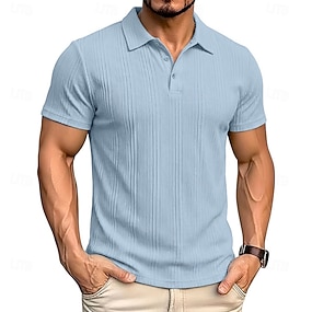 Voor heren Wafel Poloshirts Poloshirts Casual Straat Revers Korte mouw Basic Modern Gestreept Lichtgewicht Knop Zomer Lente Normale pasvorm Wit Koningsblauw Groen Khaki Licht Grijs Wafel Poloshirts