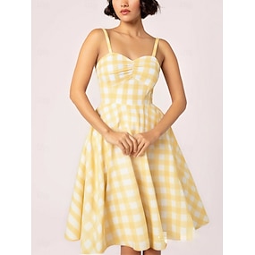 Retro vintage Jaren '50 Middag Jurken A-lijn jurk Swing Jurk Ruitjes Kostuum Dames Afspraakje Vrijgezellenfeest Volwassenen Kleding Homecoming-jurken Zomer Lente