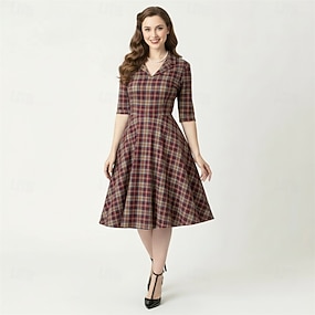 Retro vintage Jaren '50 rockabilly Middag Swing Jurk Flare Jurk Fit en Flare Ruitjes Kostuum Dames Maskerade Vakantie Casual Retro themafeest Volwassenen Kleding Lente zomer