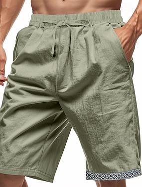 Voor heren Korte broek Linnen korte broek Zomer korte broeken Strandshorts Baggy korte broek Trekkoord Zak Elastische taille Effen Comfort Ademend Knielengte Dagelijks Buiten Feestdagen Klassieke