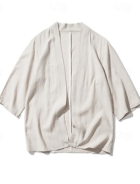 Voor heren Overhemd Linnen overhemd Viking-stijl Zomer overhemd Strand Kleding Overhemd met bandkraag Effen Kleur Casual Vakantie Zwart Wit Groen Khaki Lange mouw Overhemdkraag Zomer Lente Kleding