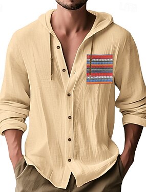 Voor heren Overhemd linnen overhemd Zomer overhemd Strand hemd Overhemd met knopen Overhemd met capuchon Effen Vakantie Alledaagse kleding Zwart Wit Hemelsblauw Khaki Lange mouw Capuchon Zomer Kleding