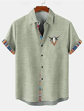Voor heren Etnisch Linnen overhemd Hawaiiaans overhemd Overhemd met knopen Korte mouw Hawaii Toevlucht Vakantie Feestdagen Strand Kleding Zomer Lente Strijkijzer 3D-afdrukken shirts met kraag blauw