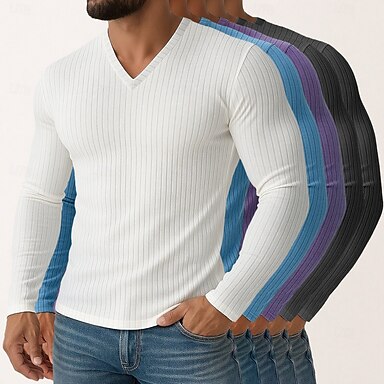 Voor heren T-shirt Geribbeld gebreid T-shirt Shirt met lange mouwen Lange mouw V-hals Lente Herfst Winter Effen Verticale stroken Pitstrook Modieus Ontwerper Basic 5-delig Multipack Vakantie Straat