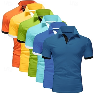 Voor heren Polo Golfshirt Casual Sport Klassiek Korte mouw Basic Effen Kleur Effen 5-delig Multipack Zomer Lente Alle seizoenen Strak 1 2 3 4 5 6 Polo