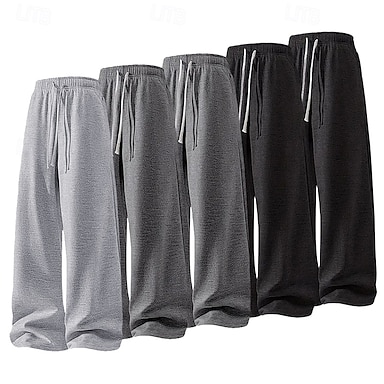 5 stuks heren joggingbroeken met rechte pijpen, fleecebroeken, casual broeken, trekkoord, elastische taille, multipack, effen, comfort, volledige lengte, buiten, reizen, dagelijks, vakantie, mode