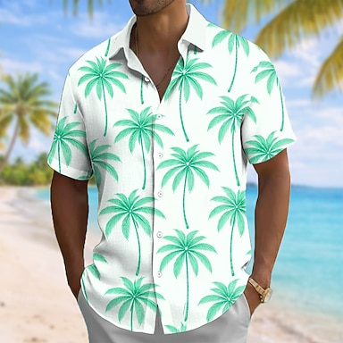 Voor heren Kokosnootboom Tropische planten Hawaiiaans overhemd Overhemd met knopen Aloha-shirt Korte mouw Hawaii Vakantie Strand Kleding Zomer Lente Strijkijzer 3D-afdrukken shirts met kraag Wit