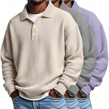 Voor heren Wafel Poloshirts Met Textuur Formeel liiketoiminta Klassiek Lange mouw Modieus Effen Kleur Effen 3-stuks Multipack Herfst Lente & Herfst Alle seizoenen Ruim Passend 1# 2# 3# 4# 5# 6# Wafel