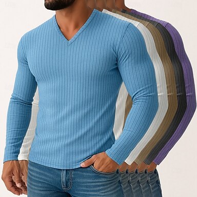 Voor heren T-shirt Geribbeld gebreid T-shirt Shirt met lange mouwen Lange mouw V-hals Lente Herfst Winter Effen Verticale stroken Pitstrook Modieus Ontwerper Basic 5-delig Multipack Vakantie Straat