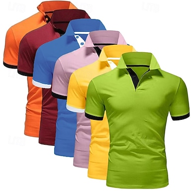 Voor heren Polo Golfshirt Casual Sport Klassiek Korte mouw Basic Effen Kleur Effen 5-delig Multipack Zomer Lente Alle seizoenen Strak 1 2 3 4 5 6 Polo
