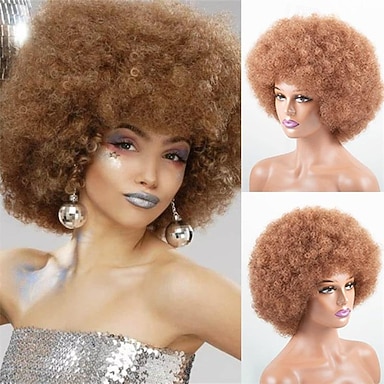 Afro Peruc 70s Afro Peruc voor Zwarte Vrouwen Afro Kinky Krullend Haar Perukken Met Pony Zacht Natuurlijk Uiterlijk Korte Afro Krullende Peruc Bouncy Voor Dagelijks Feestgebruik Halloween Perücken