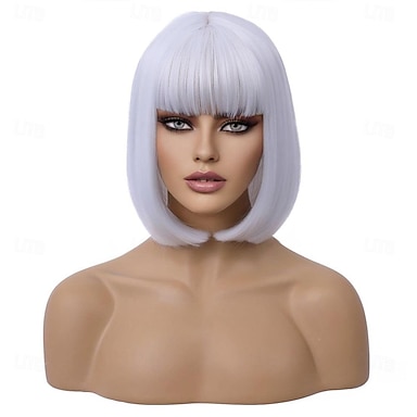 blonde bob pruik met pony korte blonde bob pruik rechte bob pruiken synthetische cosplay dagelijkse feestpruik voor vrouwen