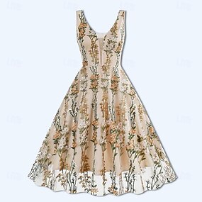 Elegant Vintage Jaren '50 Middag Jurken Mouwloos Geborduurd Bloemig A-lijn Wijd uitlopend Halternek Kostuum Dames Casual Teaparty Volwassenen Kleding Lente zomer