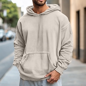 Voor heren Trui met capuchon Abrikoos Spijkerbroekblauw Zwart Wit Geel Capuchon Effen Kangoeroe zak Sport & Outdoor Casual Dagelijks Streetwear Stoer Sportkleding Alle seizoenen Kleding Hoodies