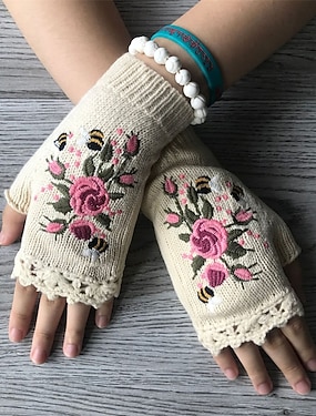 Dames 1 paar Halve vinger / Winter Handschoenen / Gebreide handschoenen Streetwear / Buiten Handschoenen - Afdrukken / Bloem