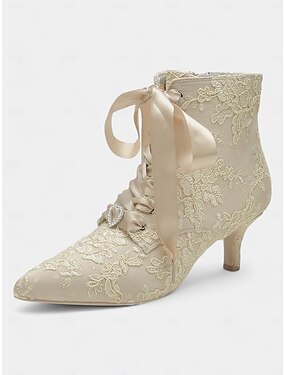Vintage enkellaarsjes met kanten rand voor dames, satijnen veters en kitten heels – elegante bruidsschoenen voor bruiloften en victoriaans geïnspireerde evenementen