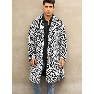 Voor heren Winterjas Bontjas Jas Vakantie Casual Winter Polyester Zacht Voor buiten bovenkleding Kleding Opwarm Kleding Comfortabel Luipaard Zak Revers