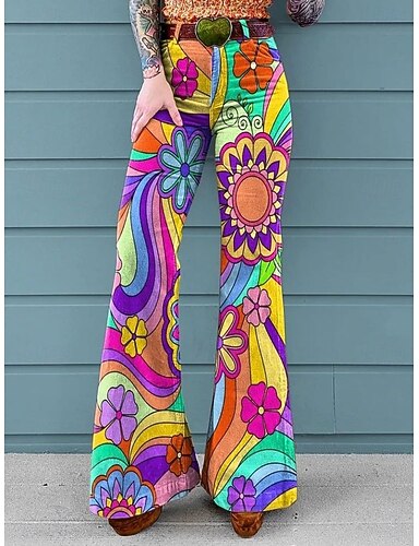 Dames Brutaal broek Schommel Vakantie Vintage Etnische stijl Volledige lengte Medium Taille Bloemig Grafisch Micro-elastisch Huis Buiten Vakantie Meerkleurig Zomer Lente Herfst Ruim Passend