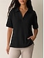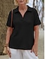 Dames Blouse Kwart ritssluiting Effen Kleur Vintage Stijlvol Basic Korte mouw V-hals Normale tops Dagelijks blauw Zwart Rood Groen Khaki Zomer Lente