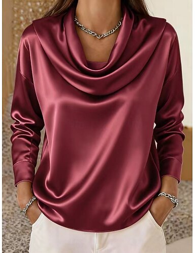 Dames Satijnen overhemd Overhemd Blouse Met ruches Effen Kleur Elegant Stijlvol Basic Lange mouw Col Normale tops Dagelijks Feest blauw Geel Rood Paars Lente Herfst