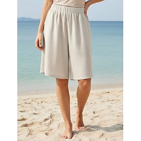 Dames korte broek Capri broeken Breed Been Korte broek Basic Casual Boho Knielengte Middelhoge taille Effen Elastische taille Comfort Inelastisch Dagelijks Buiten Vakantie Zwart Rood Marineblauw Groen