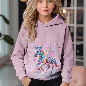 Voor meisjes 3D Eenhoorn Trui met capuchon Lange mouw Herfst Winter Modieus Aanbiddelijk Basic Kinderen 4-12 jaar Capuchon Buiten Casual Dagelijks Normale pasvorm
