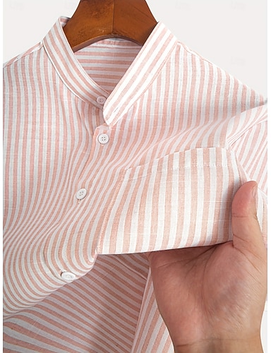 Voor heren Overhemd Linnen overhemd Zomer overhemd Strand hemd Hawaiiaans overhemd Verticale stroken Casual Dagelijks blauw Blozend Roze Korte mouw Kraag Lente zomer Kleding