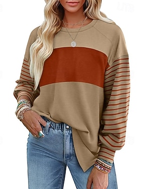 Dames T-shirt Lapwerk Gestreept Modieus Klassiek Lange mouw Strakke ronde hals Normale tops Dagelijks Uitgaan Weekend blauw Wit Blozend Roze Marine Blauw Oranje Zomer Lente Herfst