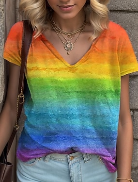 Dames T-shirt Regenboog Regenboog Korte mouw Huis Dagelijks Basic V-hals Normaal LGBT-trots S