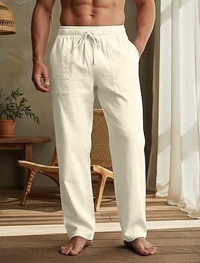Voor heren Linnen broek Broek Zomerbroek Strandbroeken Zak Trekkoord Elastische taille Effen Comfort Ademend Vakantie Dagelijks Feestdagen Hawaii Boho Beige