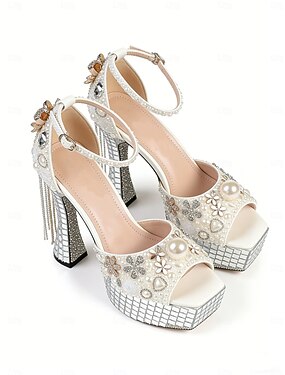 Luxe, met parels versierde platformhakken voor bruiden – stoere bruidsschoenen met hoge hakken en enkelbandje