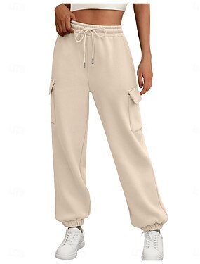 Dames Cargohosen Broeken Modieus Streetwear Volledige lengte Natuurlijk Effen Zak Comfortabel Micro-elastisch Sport & Outdoor Alledaagse kleding Zwart Beige Zomer Lente Normale pasvorm