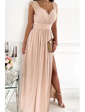 Dames Maxi-jurk Gala jurk Feestjurk A lijn jurk Elegant Modieus Modern Avond Feest Feest Bruiloft gast Normale pasvorm Effen Mouwloos V-hals Zwart Blozend Roze Wijn Rood Zomer Lente Herfst