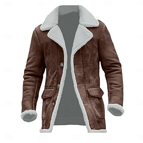 Voor heren Jas van imitatiesuède Shearling jas Fleecejack Windjack Casual / Dagelijks Windjack Zak Fleecekraag Winter Effen Kleur Vintage Modieus Revers Normaal Bruin Jacks