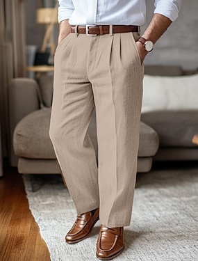 Voor heren Linnen broek Broek Zomerbroek Geplooide broek Voorvak Recht been Effen Comfort Ademend Volledige lengte Buiten Casual Dagelijks Vakantie Modieus Zwart Wit Inelastisch