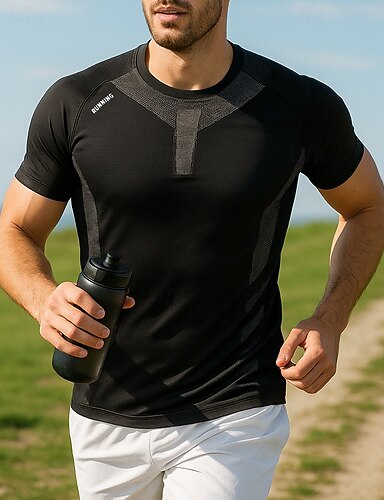 Voor heren Kleurenblok Gestreept Hardloopshirt Sporttop Zomer Lente Slank Korte mouw Sneldrogend Lichtgewicht Elastisch Ademend Tennis Golf Hardlopen Zwart Wit Marineblauw Sportkleding Sportkleding