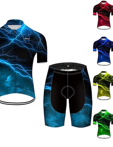 Voor heren Wielrenshirt met shorts Korte mouw Bergracen Wegwielrennen Zomer Lente Herfst Rood Groen Zwart / blauw Verloop Met Patroon Bliksem 3D Grappig Fietsen 3D-pad Fietsen Sneldrogend