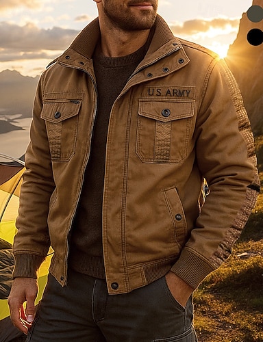 Voor heren Winterjas Fleece Cargojack Katoen Winter Herfst Buitenshuis Thermisch Warm Kleding Bovenlichaam Zwart Groen Khaki