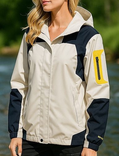 Voor heren Hoodie jas Softshell jas Wandeljack Lente Herfst Buitenshuis Kleurenblok Winddicht Waterbestendig Windjack Reizen Zwart Blauw Beige Grijs