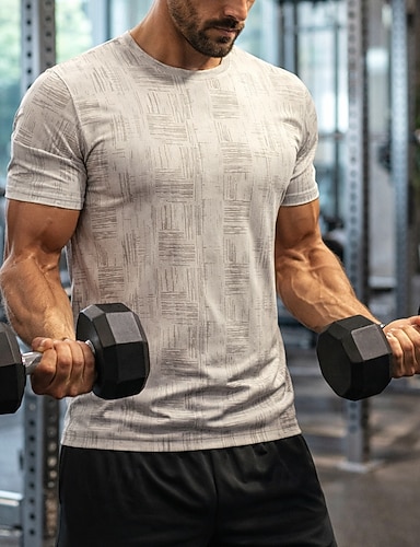 Voor heren Geruit geruit Hardloopshirt Compressieshirt Atletisch shirt Sporttop Zomer Korte mouw Sneldrogend Vochtregelerend Ademend Sportschooltraining Wandelen Joggen blauw Donker Grijs Abrikoos