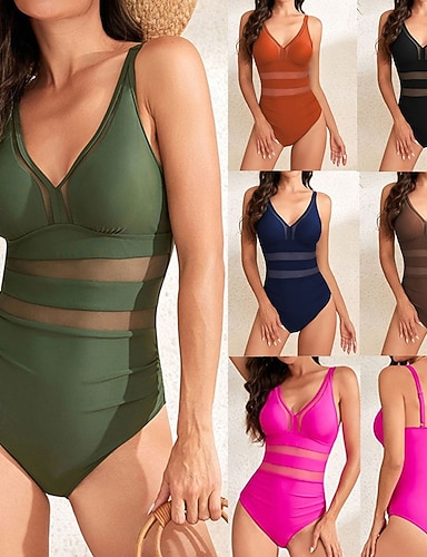 Dames Badpak Badpakken Eén Stukken Effen V-hals Buikcontrole Elastisch Mouwloos Zwemkleding Surfen Strand Vakantie Zomer