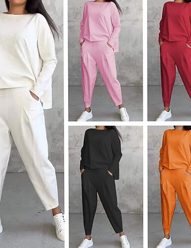 Dames Pullover Sweatsuit Sets 2-delig trainingspak Lounge-outfits met zak Effen Sportoutfits Herfst Zwart Wit Sportschool Hardlopen Fitness Lichtgewicht Ademend Lange mouw Sport Sportkleding