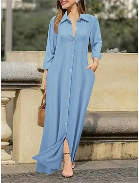 dames casual jurk swing jurk lange jurk maxi jurk blauw geel roos rood mouwloos split lente zomer v-hals hot s m l xl xxl xxxl