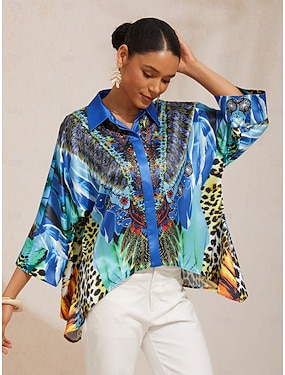 Jungle Wild Party zijden satijnen shirt met vleermuismouwen