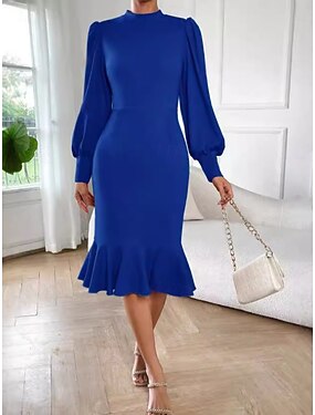 Dames Halflange jurk Feestjurk Werk Jurk Schede jurk Kerk jurk Volwassen Elegante jurk Kantoor Afspraakje Teaparty Normale pasvorm Heldere kleur 3/4 mouw Strakke ronde hals Marineblauw blauw Groen