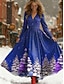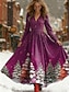 Kerstmis Dames Halflange jurk A lijn jurk Vakantie Casual Feest Dagelijks Feestdagen Normale pasvorm Grafisch Kerstboom Lange mouw V-hals blauw Wijn Paars Groen Herfst Winter